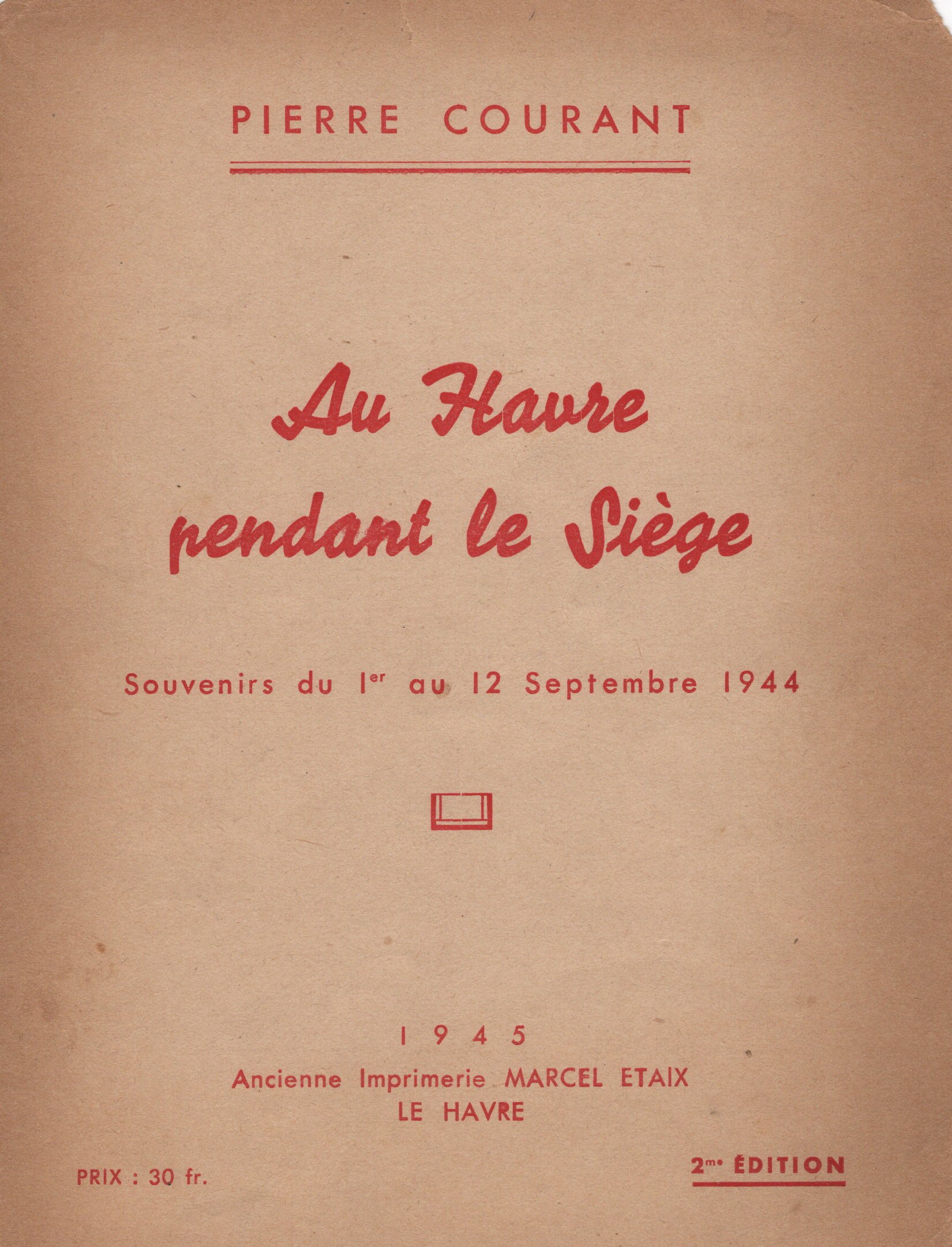 Pierre COURANT - "Au Havre pendant le siège" Souvenirs du 1er au 12 septembre 1944.